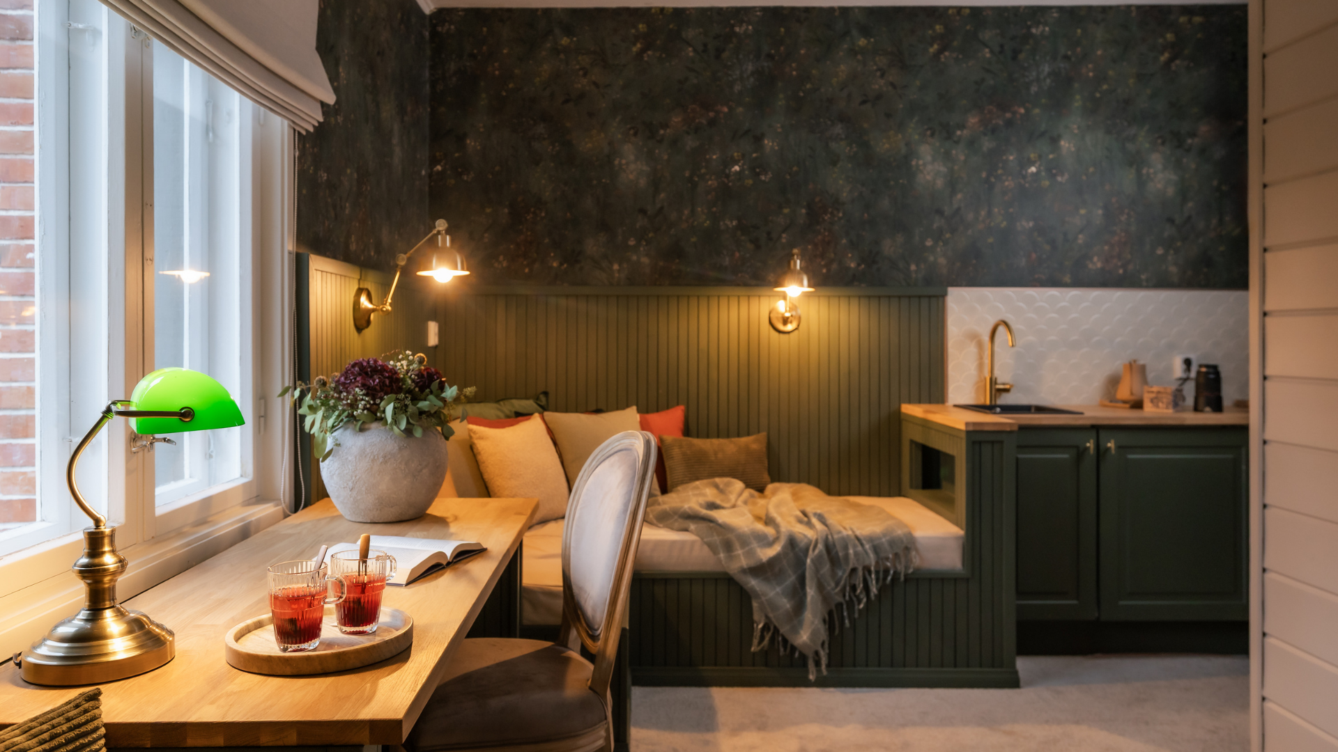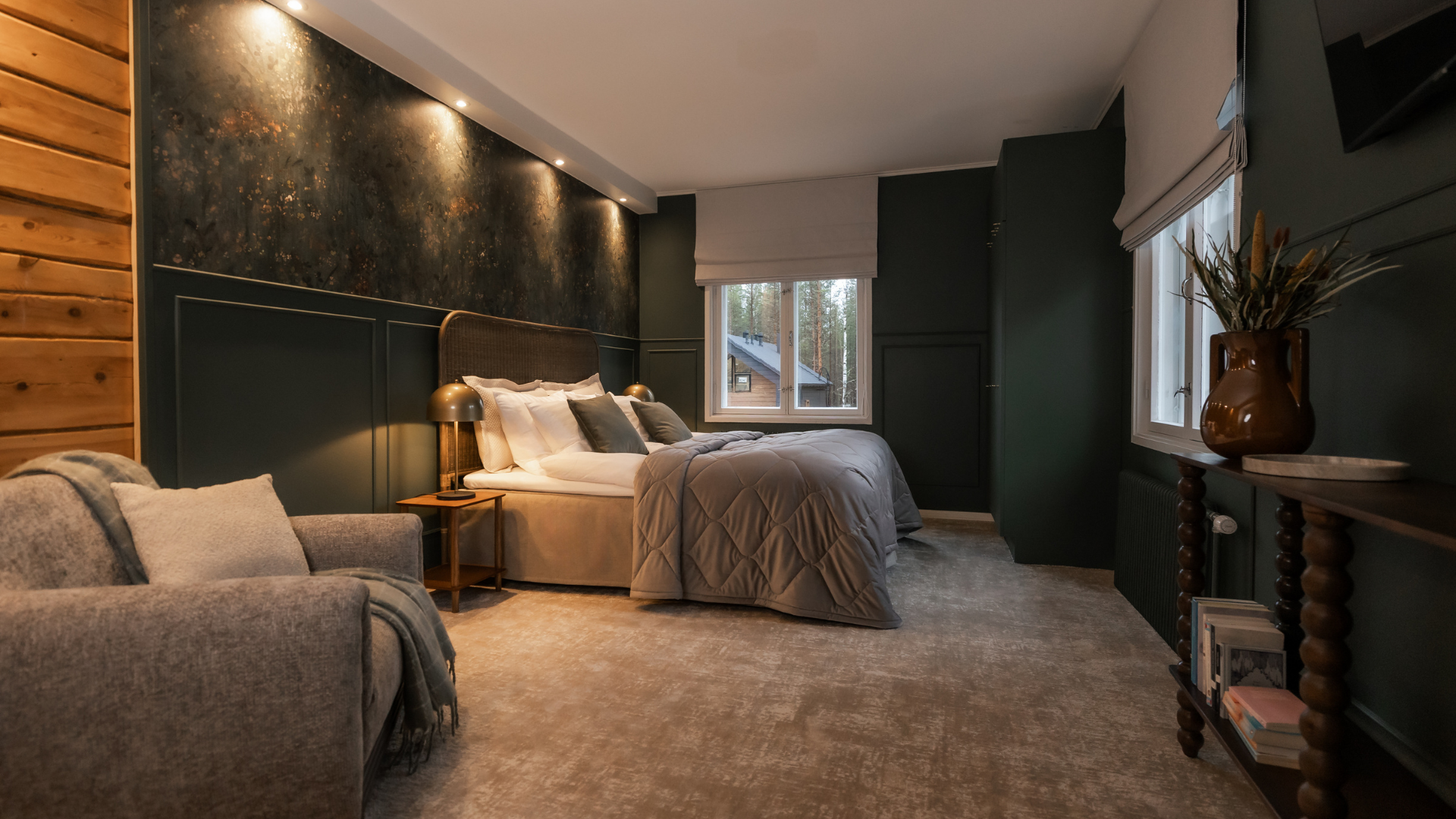 These two unique historical suites (65m²) once housed the school’s teachers, and now host families and small groups traveling to Lapland. Two colorful bedrooms, cozy living area among the curated amenities create a peaceful environment.